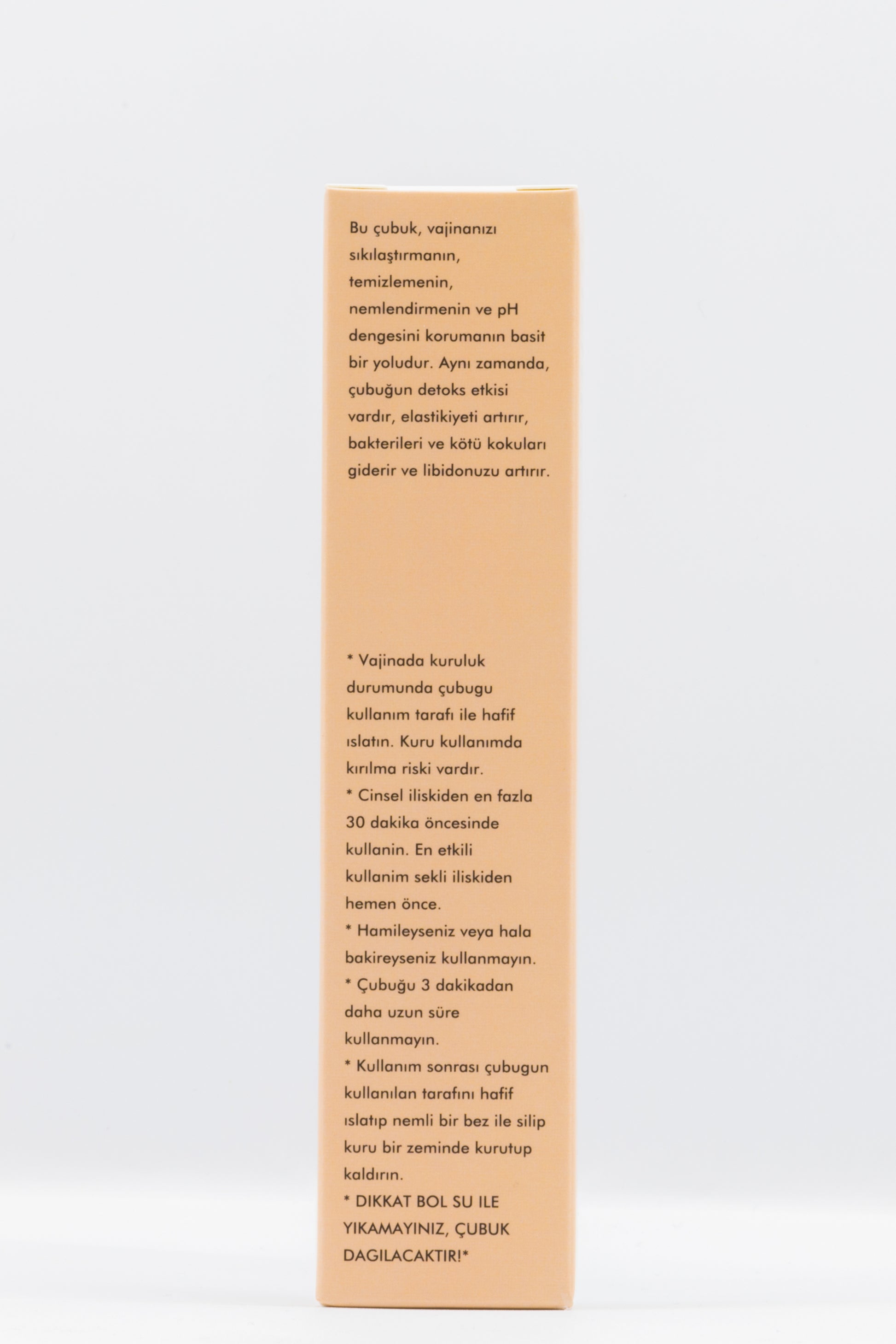 Bu çubuk, vajinanızı sıkılaştırmanın, temizlemenin, nemlendirmenin ve pH dengesini korumanın basit bir yoludur. Aynı zamanda, çubuğun detoks etkisi vardır, elastikiyeti artırır, bakterileri ve kötü kokuları giderir ve libidonuzu artırır.